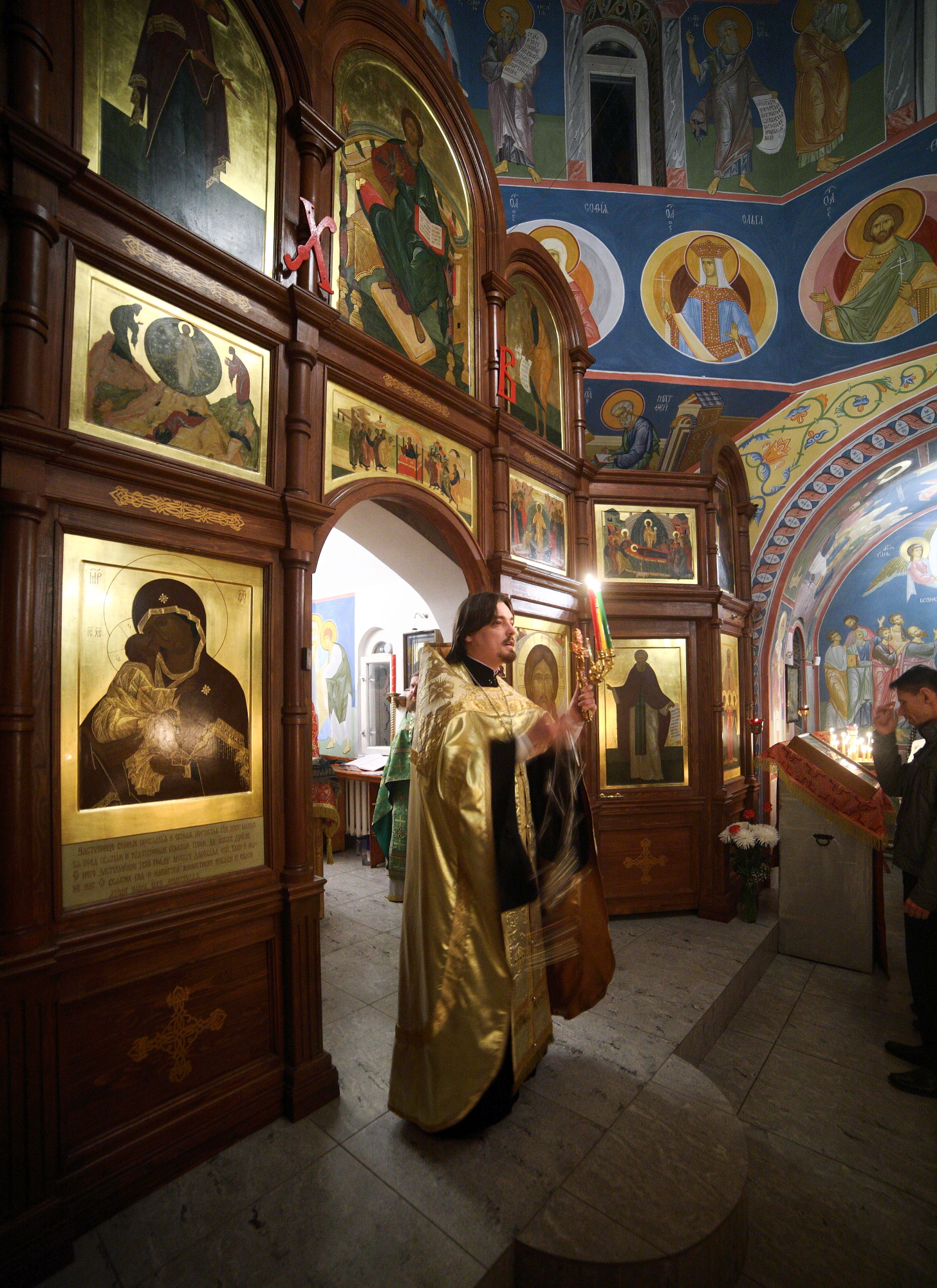 Пасха 2015 г. о.Александр в жёлтом облачении