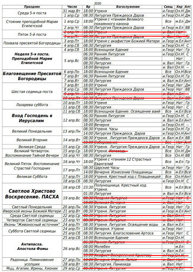 Расписание богослужений на апрель 2020